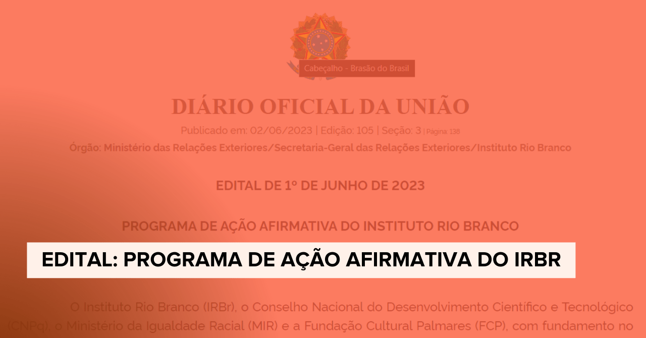 O MRE tornou público seu edital para o Programa de Ação Afirmativa do Instituto Rio Branco de 2023 (PAA/IRBr).